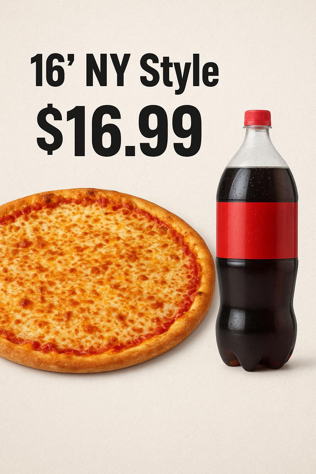 Combo Deals:Large Cheese 16' New York Style Pizza and Soda